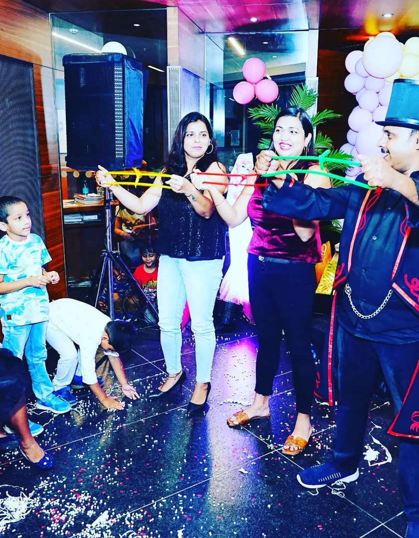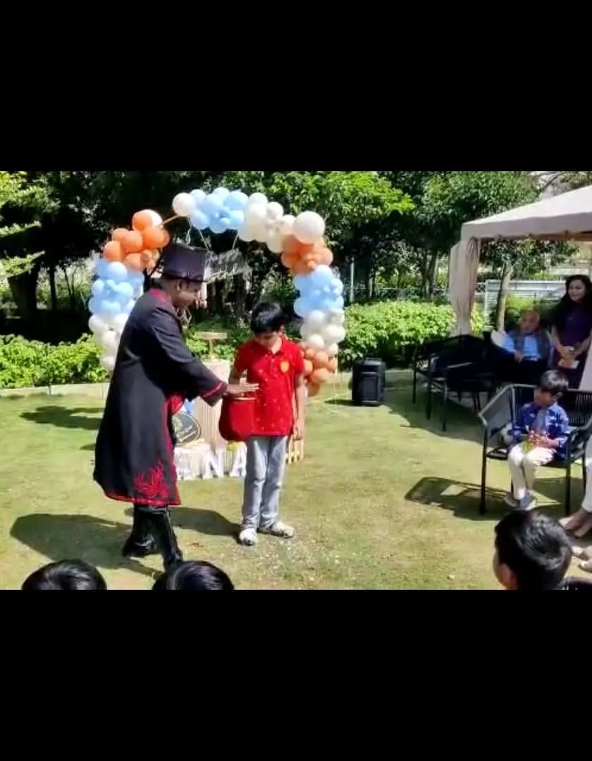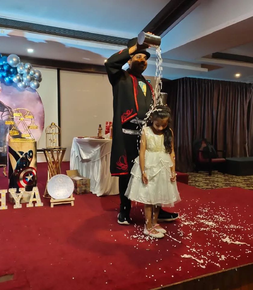 At every birthday, my main goal is to make the special child the hero of the show. I perform specific tricks that involve them directly, from helping with an illusion to receiving a grand, magical confetti surprise.