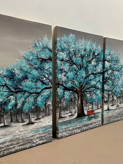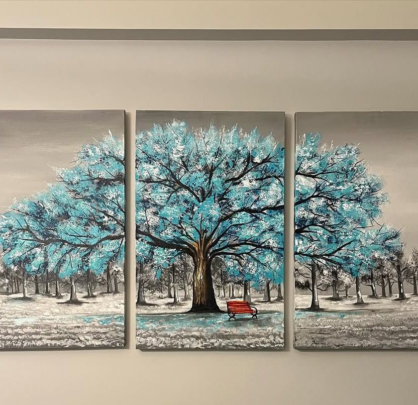 Beyond walls, I also create custom art on canvas and other surfaces. This includes multi-panel canvas paintings (triptychs) for living rooms, textured abstract pieces, and unique decor items, perfect for adding a personal artistic touch to your home.