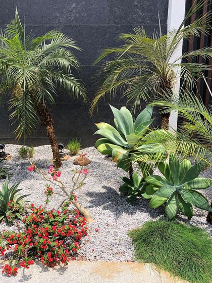 Inspired by the rocky landscapes around Bangalore, these gardens are beautiful, low-maintenance, and water-wise. We use gravel, stone, and a careful selection of hardy plants like agaves and palms to create stunning, sculptural landscapes.