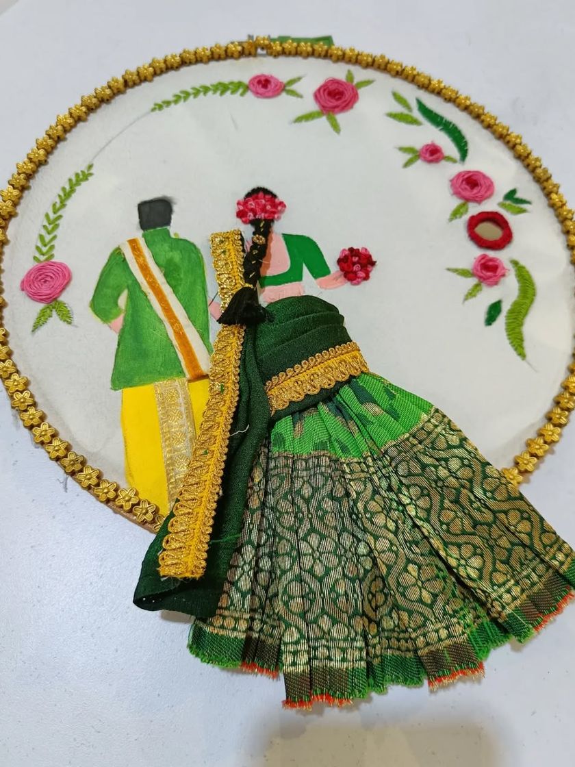 I transform simple fabrics into works of art through painting. This collection highlights my specialty in the traditional Thanjavur style, known for its vibrant colors and embellishments, as well as other fabric painting techniques for creating unique patterns and motifs.