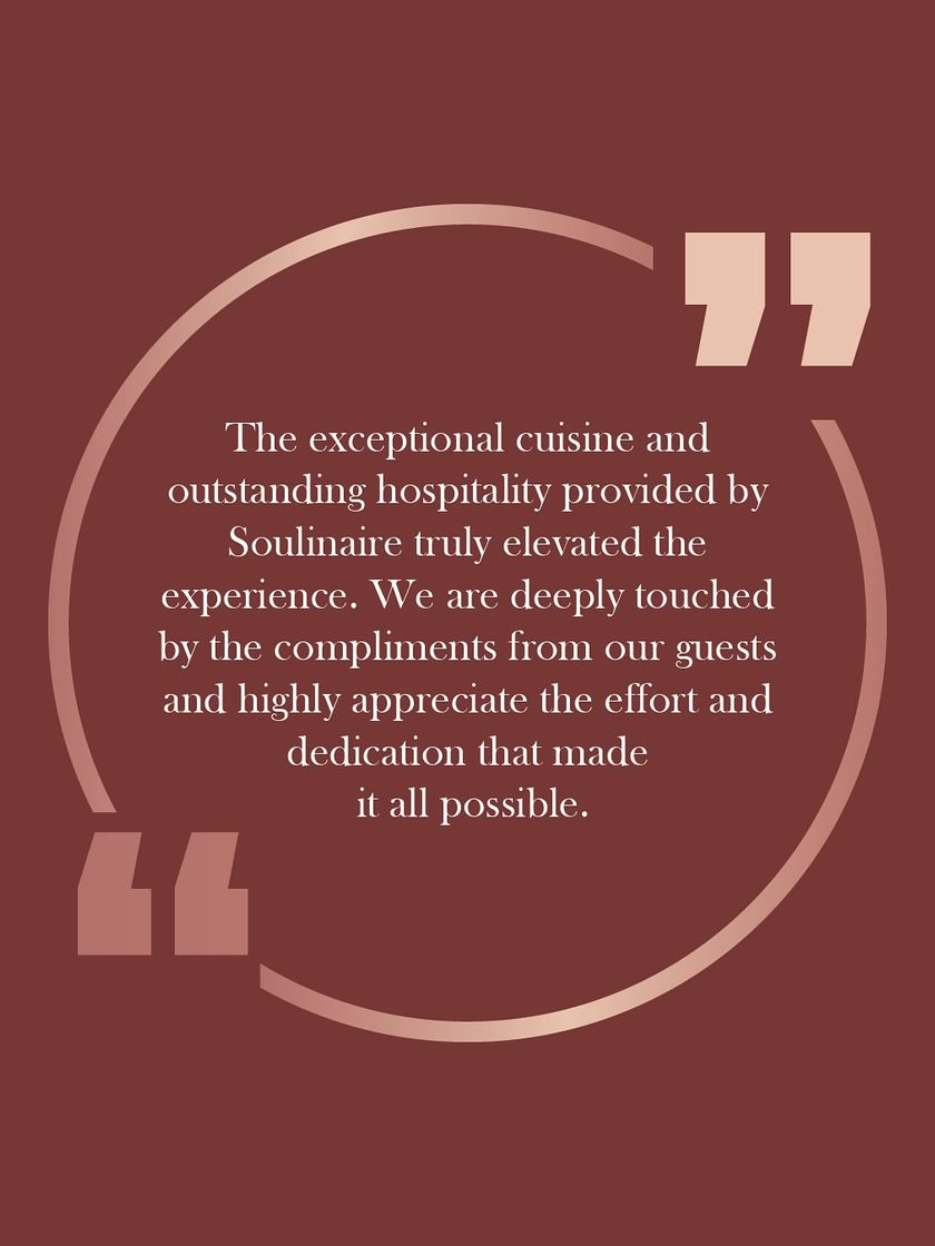 We are deeply grateful for the heartfelt words of appreciation from our clients. These testimonials reaffirm our purpose and fuel our passion for crafting unforgettable experiences and moments that matter most.