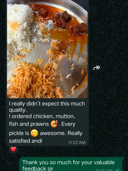 We prepare authentic Andhra pickles, snacks, and podis fresh for every order, with customizable spice levels. Enjoy the taste of pure, homemade food, made with love and no preservatives.