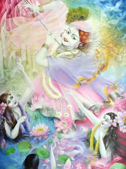 I take inspiration from classic Indian mythology and reinterpret these timeless stories with a modern, sometimes surreal, visual language. These pieces blend traditional figures like Radha and Krishna with vibrant colors and dynamic compositions to create something new.