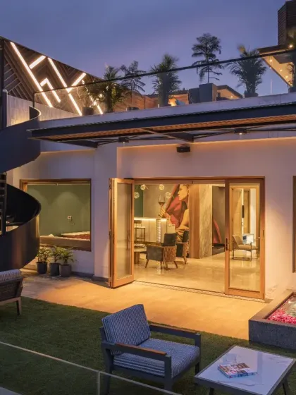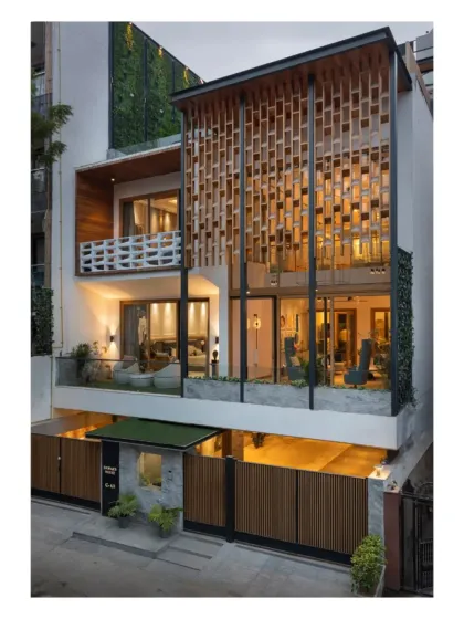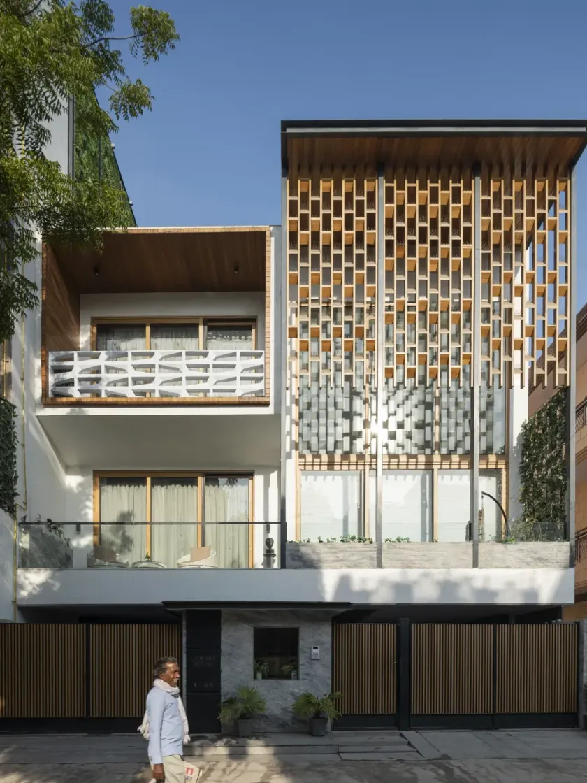 The façade is the first chapter of a home's story. I love to create bespoke residential façades using a dynamic interplay of materials like stone, wood, and metal, along with architectural elements like jaalis (screens), louvers, and bold, sculptural forms for drama, privacy, and character.