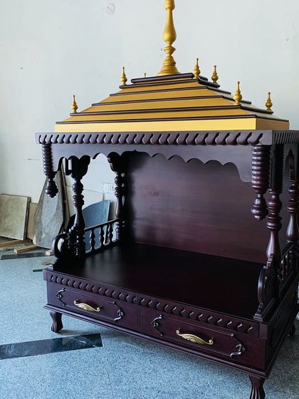 - Hand-carved wooden furniture is our signature. You’ll see floral carving on puja units, sculpted sofa legs, and even solid wood sculptures that take months.