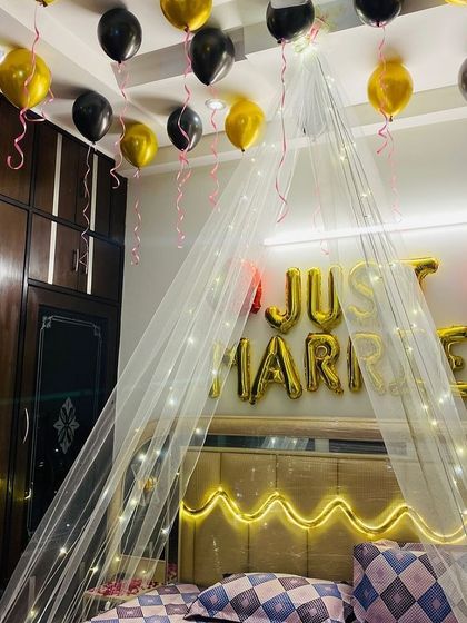 All Types of Decorations - Simple balloon room decor se leke grand stage setups, selfie points - sab kuch milta hai.
