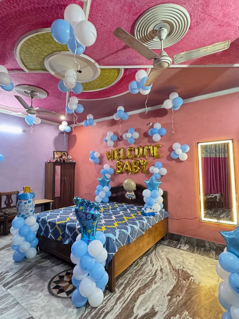 We handle all decorations for welcoming a new member to your family. This includes "Welcome Baby" decorations for your home, full setups for baby shower parties, and creative "Gender Reveal" backdrops. We offer everything from simple room decor to grand party arrangements.