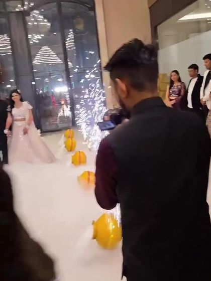 I combine low-lying dry ice fog with safe cold pyrotechnics to create a magical "walking on clouds" entrance. This is my most requested setup for weddings and receptions, guaranteeing a breathtaking moment for your grand entry.