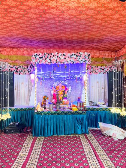 I provide decorations for various religious ceremonies and festivals, including Ganpati Chaturthi and home pujas. My setups can include floral arrangements, sequin backdrops, custom lighting, and traditional elements to create a respectful and beautiful space for worship.