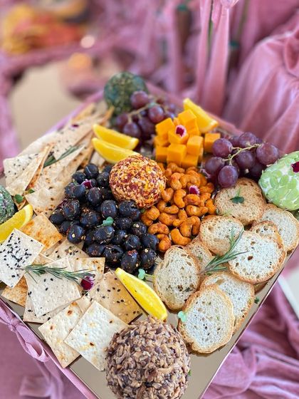 We create visually stunning and abundant grazing spreads featuring premium cheeses, crackers, fruits, nuts, and gourmet appetizers. Our tables and platters are customized to match your event theme and preferences.