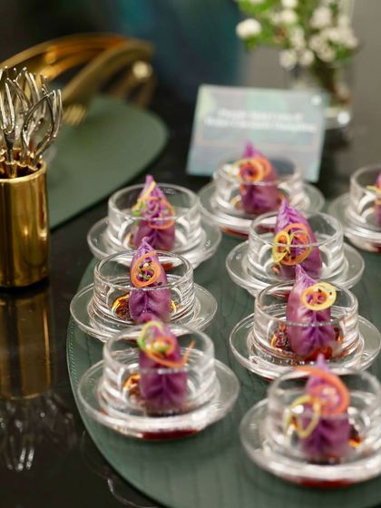 We provide high-end catering services featuring innovative Asian-fusion cuisine and elegant presentation. Our extensive menu includes specialty items like truffle edamame dumplings, activated charcoal buns with gold dust, and unique live stations.
