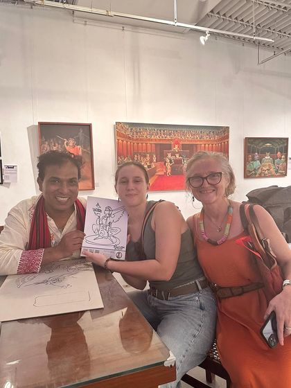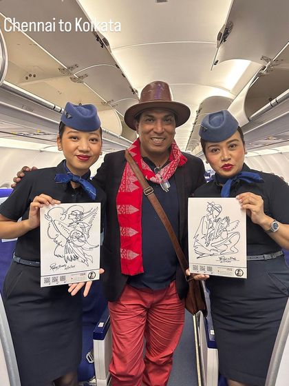 I create live, personalized art at events—like speed painting, signature drawings, sand stories, and caricatures—so guests get unique pieces made in real time to take home.