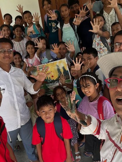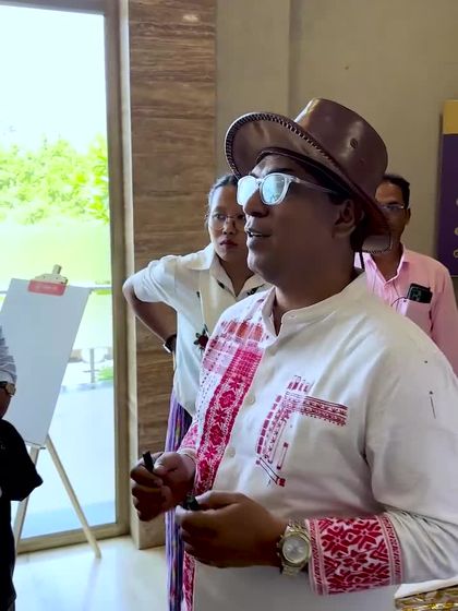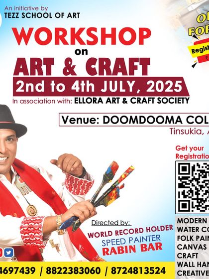 Hey, I’m Rabin Bar, speed painter from Assam – three world records, but honestly, nothing beats seeing people smile at my art. I’ve painted live all over India, Delhi, Mumbai, Hyderabad, big crowds, big events. Still, Gogamukh and Dhemaji, my students, amar bhal lage (feels good). Always got my Gamosa with me, Assamese roots strong. Art’s my way to connect, make stories from a simple signature. Lucky to share this with everyone.