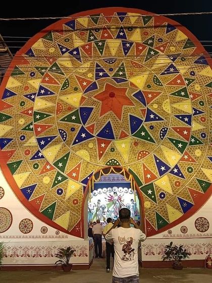 I create unique installation paintings that blend traditional art with unconventional materials like waste ornaments and decorative elements. My pieces combine acrylic paint with beads and jewelry to form intricate, sustainable designs.