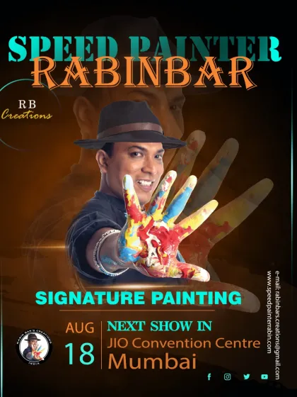 For a truly unforgettable moment at your event, I create large-scale paintings live on stage. With high-energy music and sometimes even fire, I bring portraits of icons, company logos, or custom themes to life in minutes, ending with a dramatic reveal that always wows the crowd.