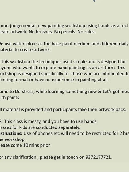 Hand Painting Workshop - No brushes, just hands! Get messy with watercolours and acrylics. Perfect for those scared of painting.