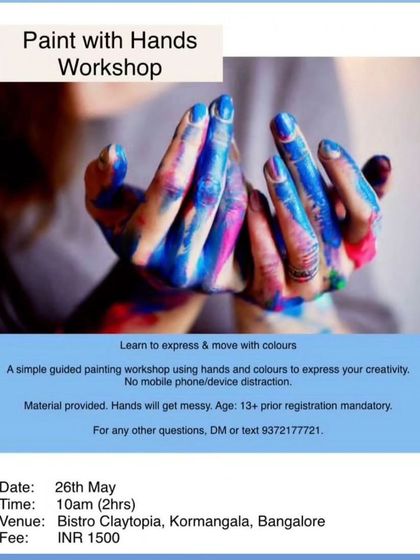 We run hands-on painting workshops where you use your hands instead of brushes, no experience needed, and everyone leaves with their own artwork.