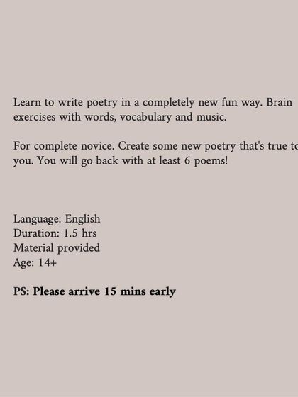 We skip the complex theory and jump straight into creating. You can expect fun brain exercises and wordplay that will help you write at least six original poems, even if you've never written before.