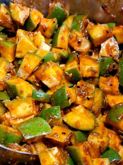 Everyone loves a good mango pickle, and I make several kinds, each with its own special taste. I use fresh raw mangoes and my family's traditional Punjabi recipes to create these tangy and flavourful achaars.