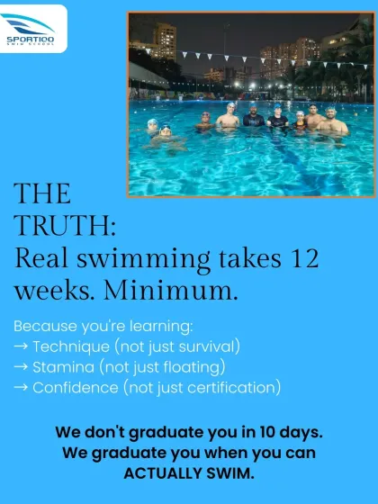 No Shortcuts, Only Real Skills - We teach real swimming technique classes - strokes, kicks, breathing, stamina. No crash course, only graduation when you can swim.