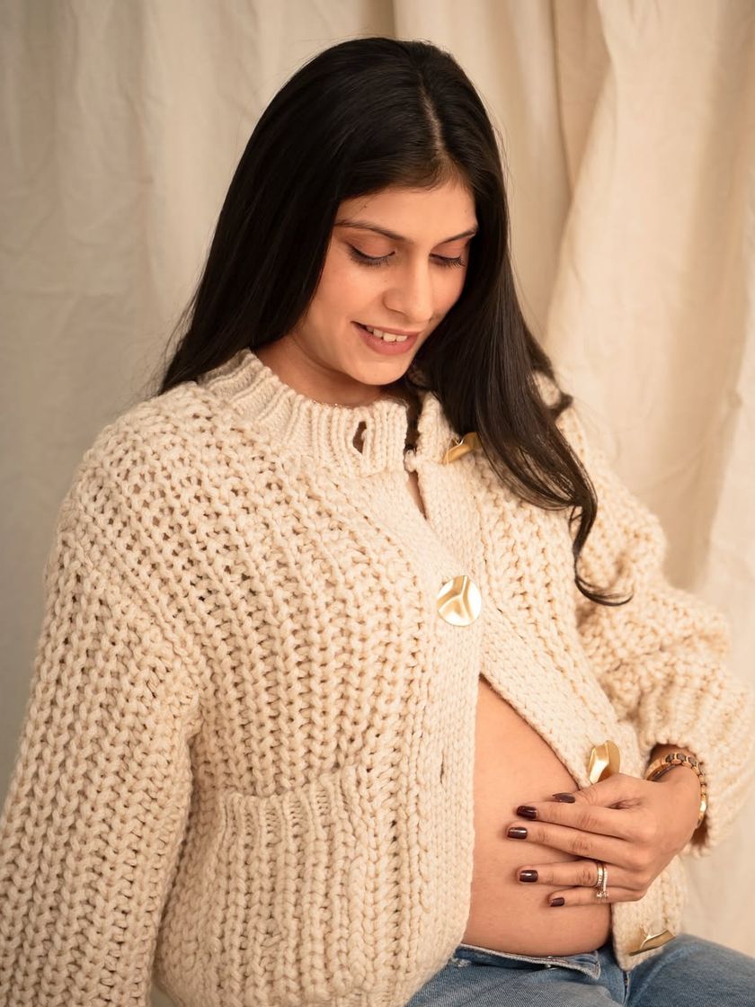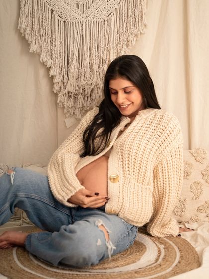 For the parents-to-be who want their photos to feel relaxed, authentic, and just like them. In my studio, we use soft lighting, neutral backdrops, and cozy props to create a comfortable space where you can just be yourselves. Think chunky sweaters, soft fabrics, and lots of genuine laughter.