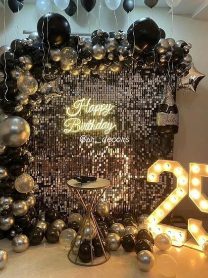 You want that "wow" moment? We use a mix of shimmer walls, balloon arch decoration, custom banners, and giant light-up numbers. For lighting, neon party lighting and fairy lights give your space the right energy. Balloons come in all shapes - letters, animals, rockets, whatever fits the mood.