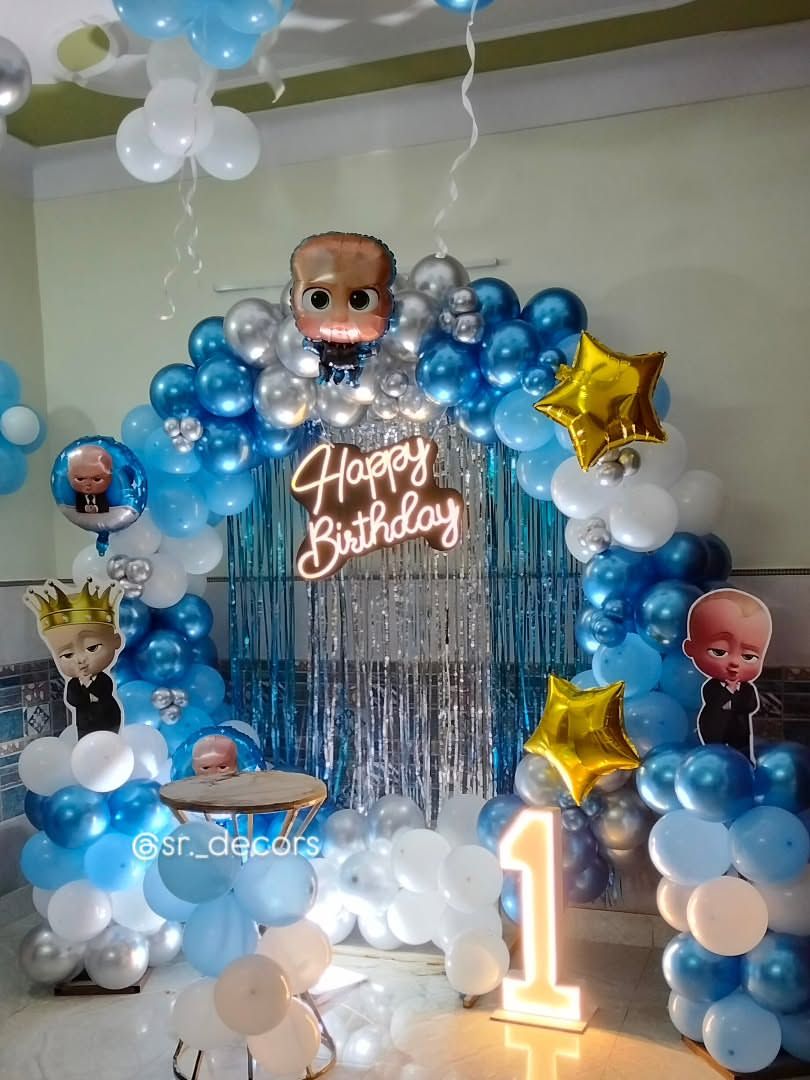 We create magical worlds for your child's birthday with our popular themed decorations. Whether it's a 'Boss Baby' takeover, a 'Space' odyssey, a 'Fairy' wonderland, or a 'Spider-Man' adventure, we handle every detail from character cutouts to themed balloon arrangements.