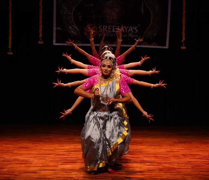 Bharatanatyam is a language of storytelling. I teach my students that the most important part of this language is Abhinaya, the art of expression. We focus on the Navarasas (nine emotions) and Mudras (hand gestures) to convey stories with depth and feeling, because as I always say, kannu aanallo ettavum important (the eyes matter most).