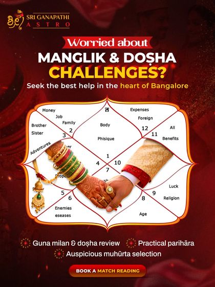 - Dosha & Remedies: Manglik dosha remedies and other parihāra (solutions) are part of my work. I check for doṣhas and suggest practical fixes, not just rituals.