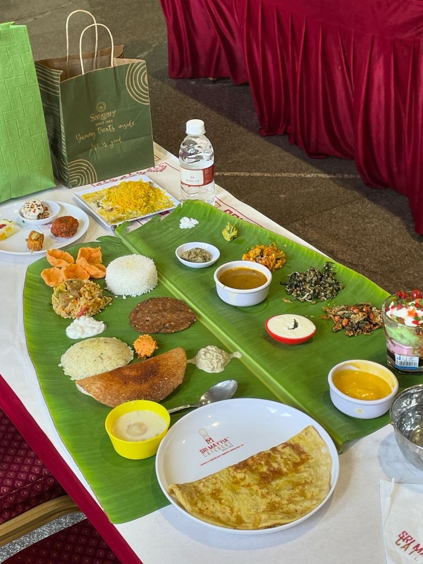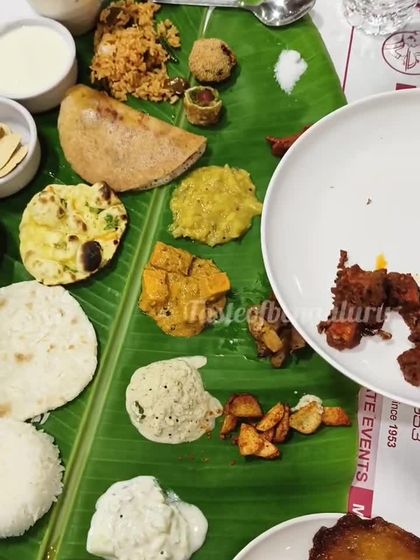 This is our hallmark, the traditional South Indian *ele oota* (banana leaf meal) that we have perfected since 1953. We serve a complete, authentic vegetarian spread with a variety of curries, rice dishes, sweets, and savouries, ensuring a memorable cultural and culinary experience for your guests.