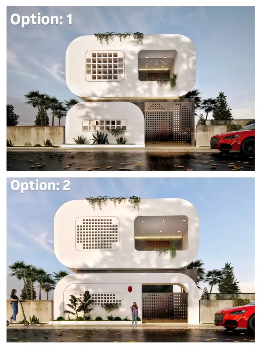I turn 2D architectural plans into stunning, photorealistic 3D exterior visuals for any plot size, from compact 20x30 sites to sprawling properties. My renders help you finalize materials, lighting, and color schemes with confidence, showing you exactly how your home will look.