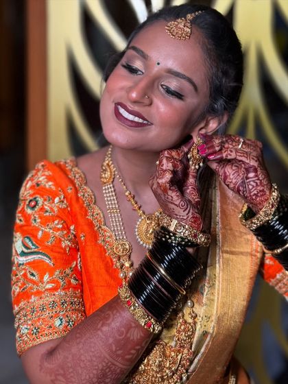 I take care of your bridal makeup, hair, and saree draping for every ceremony, so you get a look that matches your style and tradition without any stress.