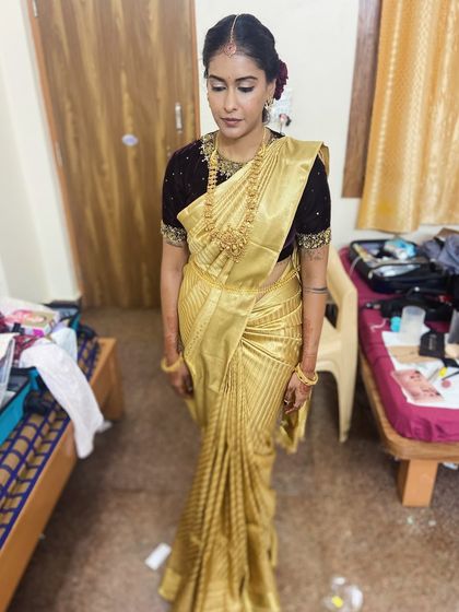 Complete Makeovers & Muhurtham Magic - We love full transformations, from makeup and hair to saree draping, especially for South Indian Muhurtham makeup.
