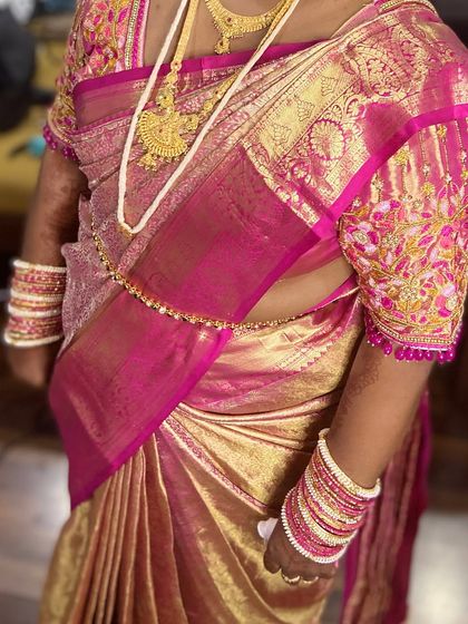Brides and guests attending South Indian weddings, traditional ceremonies, and cultural events who want an authentic and professionally draped saree look.