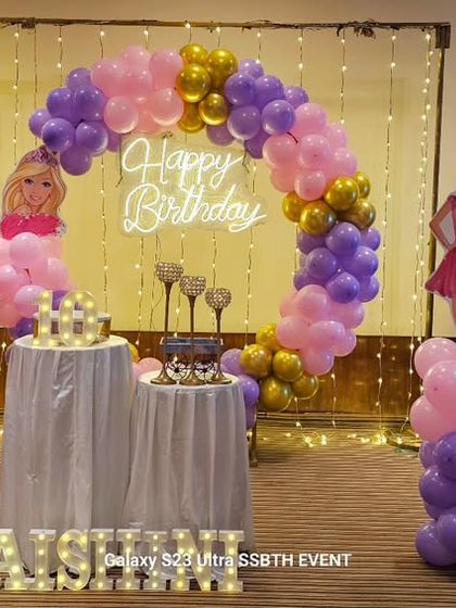 - Custom party backdrops: Green wall, shimmer panels, curtain drapes with fairy lights for those Insta-worthy photo spots. Neon signs like "Happy Birthday" or custom welcome boards.
