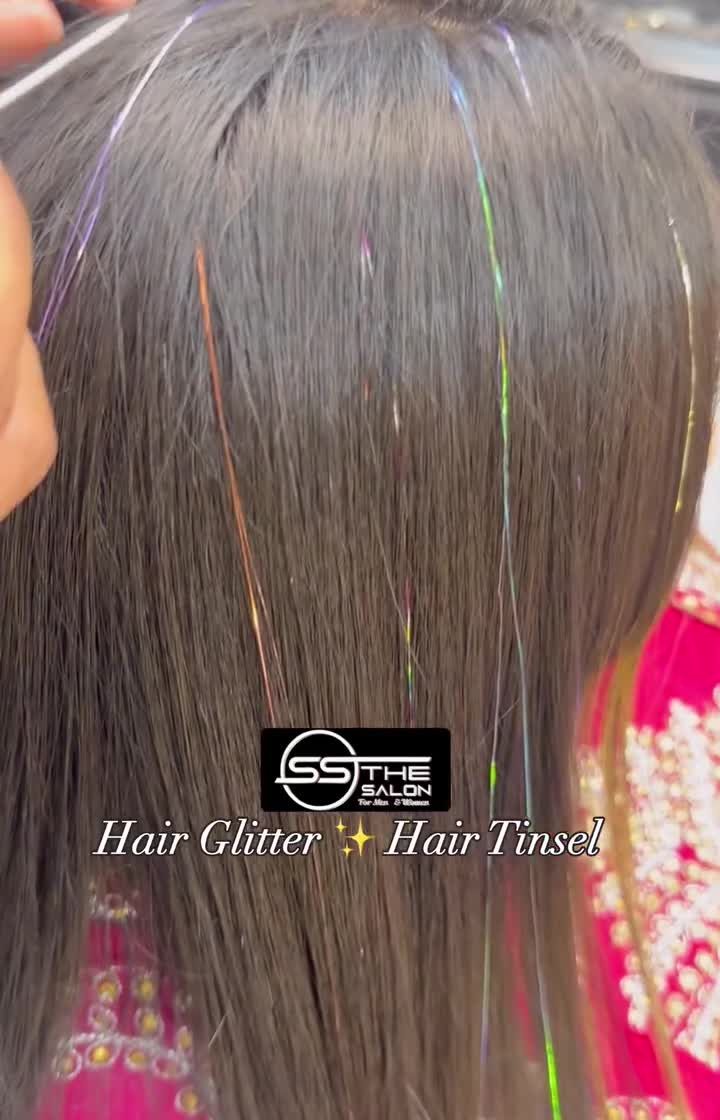 Add a touch of sparkle to your hair with trendy hair tinsel. These glittery strands are perfect for festivals, parties, or just for fun, and can be applied in various colors to match your look.