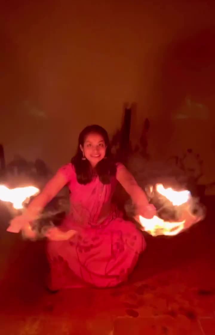 Palm torches allow for a very personal and expressive style of fire dance, almost as if I'm holding the flames in my bare hands. This art form blends the grace of hand mudras with the raw element of fire, perfect for belly dance fusion and emotive storytelling.