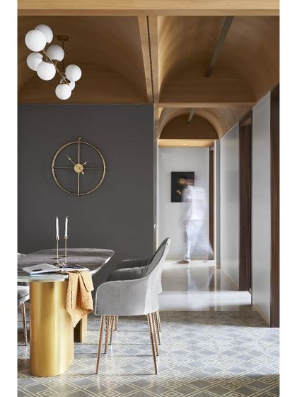 In the 'Tranquil Tides' project, I blended contemporary design with classic Art Deco elements to create a uniquely elegant home. I used a neutral grey palette, natural oakwood, and marble, maximizing ceiling height with dramatic vaulted arches to craft a space that is both soothing and sophisticated.