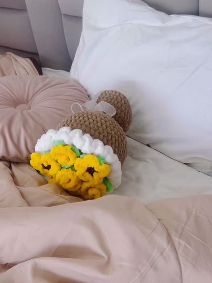 My signature handmade bouquets that last forever. I create these using classic yarn, featuring popular flowers like tulips, roses, sunflowers, and hyacinths in various color combinations.
