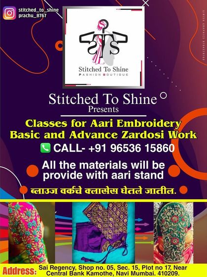 Aari & Zardosi Embroidery Classes - Offline classes for basic and advanced embroidery. Blouse varkhe classes ghetle jaatil (blouse work classes too).