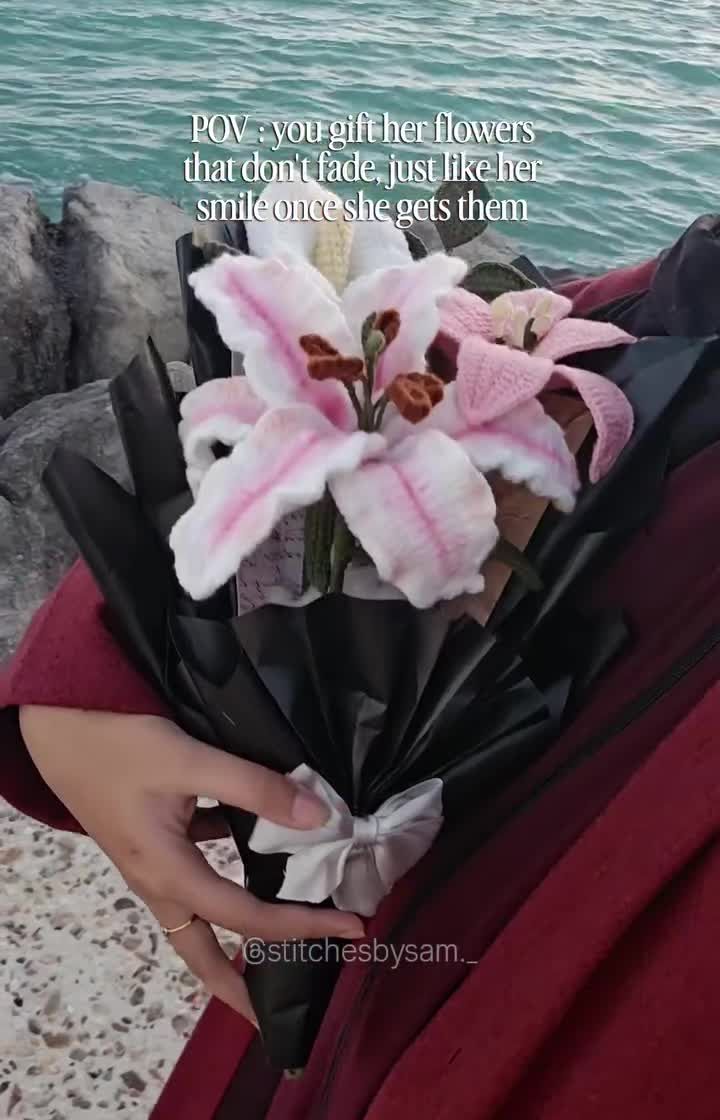 Why buy flowers that wilt when you can have ones that last a lifetime? I create detailed crochet flower bouquets, single stems, and mini baskets. These make for beautiful, everlasting gifts and home decor, including lily bouquets and single red roses.
