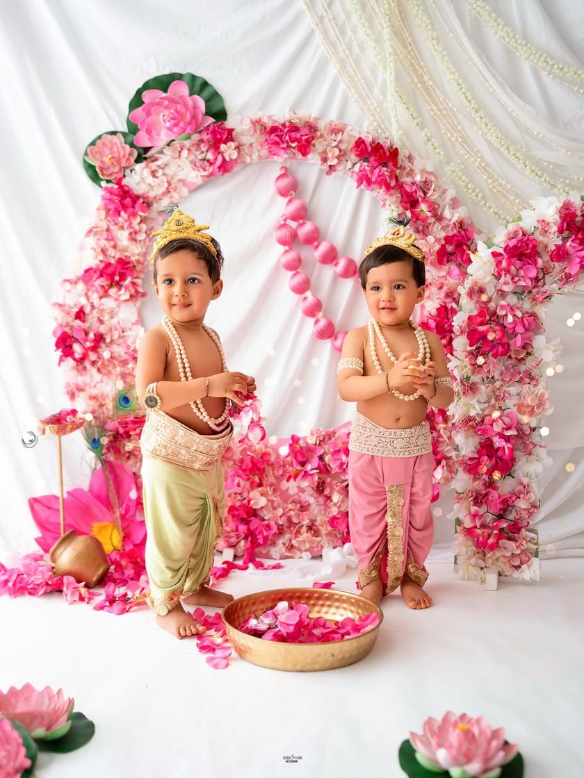 I love creating unique photoshoots that celebrate your family's culture and special milestones. This collection features my Janmashtami themed sessions with colorful outfits and divine setups, as well as fun baby shower setups to celebrate your new arrival.