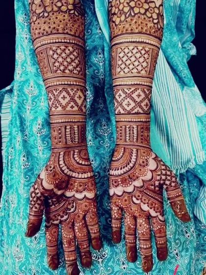 - Bridal mehendi that goes all the way up to the elbows, dense and detailed, perfect for that big day.