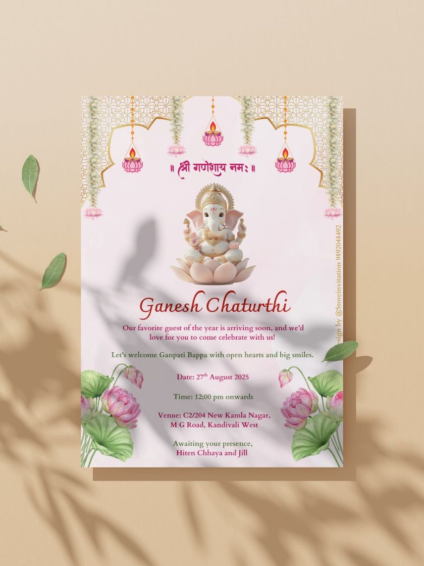 Mark life's special moments with a bespoke design. I create elegant invitations for milestone anniversaries, festive celebrations like Ganesh Chaturthi, and other significant family events like a Half-Saree ceremony.
