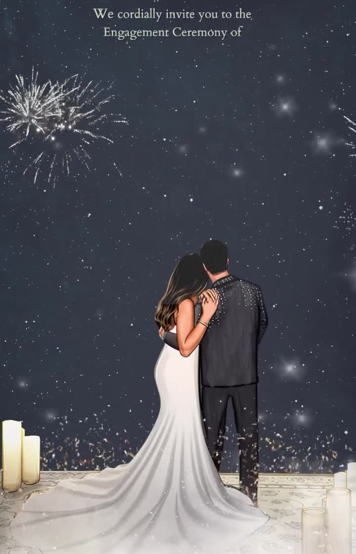 I design digital and video invitations that set a magnificent tone for your wedding. This collection features glamorous themes with starry nights and chandeliers, as well as royal heritage designs with traditional motifs like peacocks and palaces.