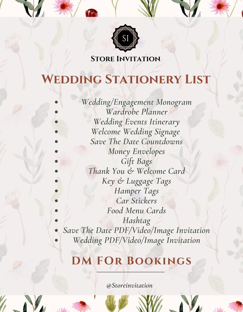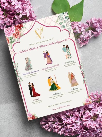 I ensure your design theme carries through beautifully to the wedding day itself. I create elegant welcome boards, event signage, itineraries, and menu cards that guide your guests and enhance the decor of your celebration.