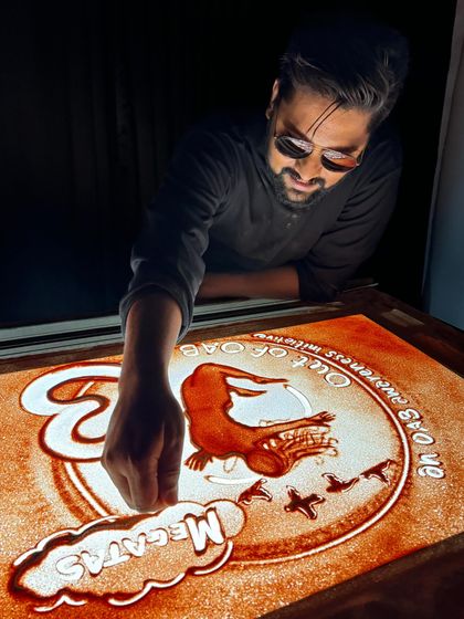 People see me as an artist, but my soul's tied to tradition. I’ll pick a kurta over a suit any day – Indian ethnic wear is my kind of power dressing. My art changes with my mood, just like life. Ganeshotsav at home? Full-on temple vibes, family, aartis, peace. Ganpati Bappa Morya! That’s my anchor. Whether I’m in Jaipur, Bangkok, or chilling in Dapoli, I’m always chasing the next story in sand.