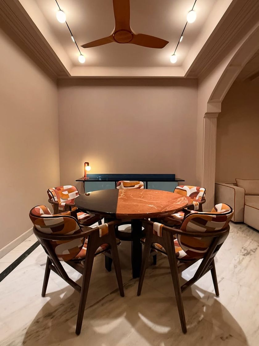 I design dining furniture for spaces that exude boldness with colors, patterns, and lines. This collection includes post-modern sets with vibrant upholstery and luxury dining tables that fuse high-gloss finishes, stone tops, and ebony-stained solid wood.