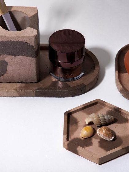 My decor line is all about chasing a vibe with unique materials and wild colors. This collection features my handcrafted concrete objects, including marbled trinket trays, colorful planters, and quirky 'Thicc' cups, each handmade in my Delhi studio with its own unique twist.