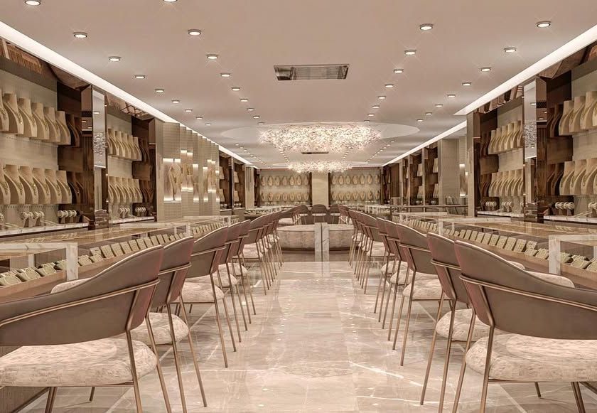 Designing for luxury retail, especially jewellery, is about creating a world of elegance and desire. We craft interiors that feel grand but not intimidating, using materials like warm marble, brass, and fluted panels to build a narrative of timeless opulence. Our layouts and custom displays are meticulously planned to make the products the hero, ensuring customers feel they are stepping into somewhere truly special.